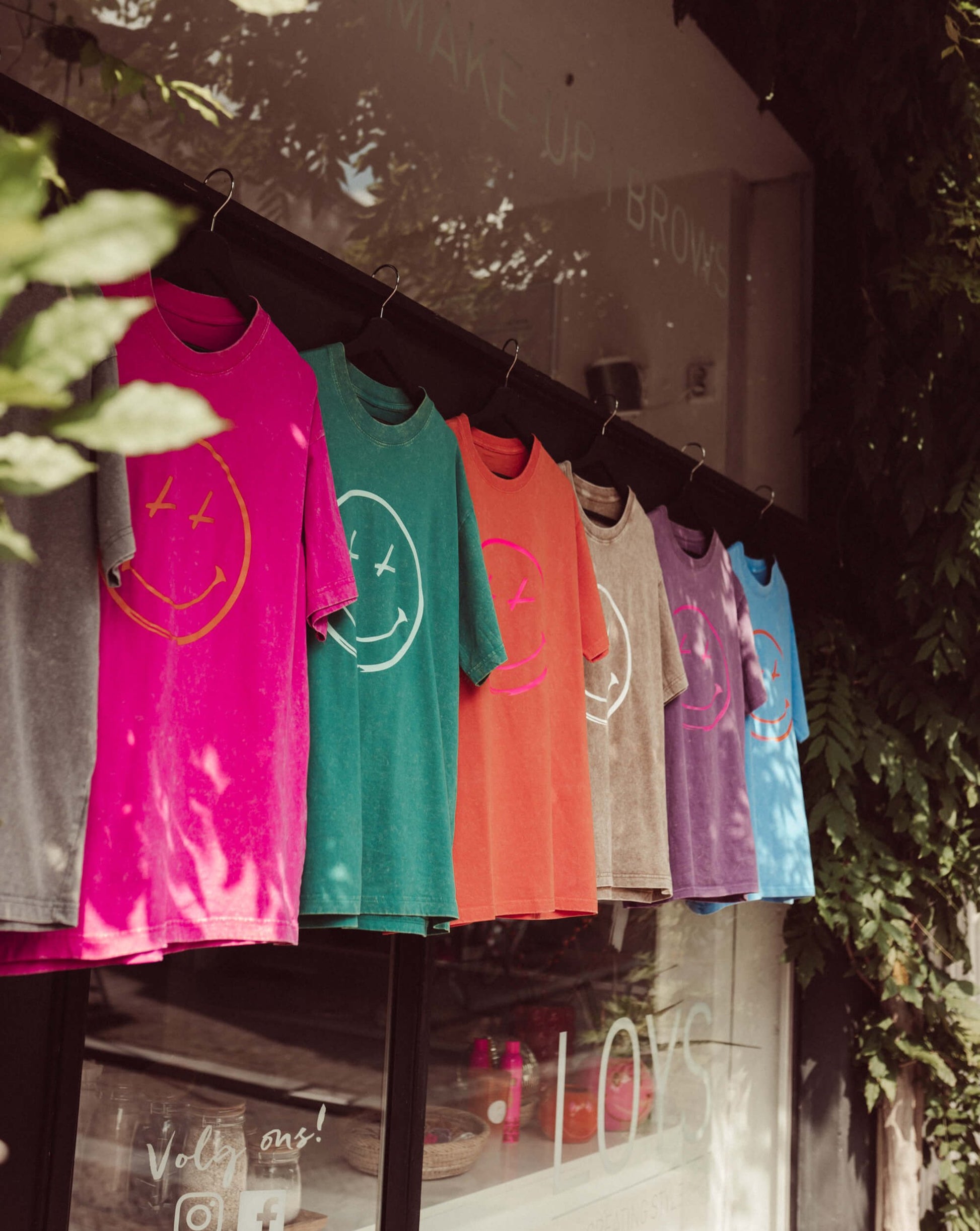 Yes, onze eerste Happiness collectie is nu te shoppen. Het 'Smiling All Day T-shirt' komt in zeven verschillende kleuren: oranje, roze, paars, blauw, grijs, beige en groen. Het T-shirt heeft een oversized fit met een gewassen uitstraling.